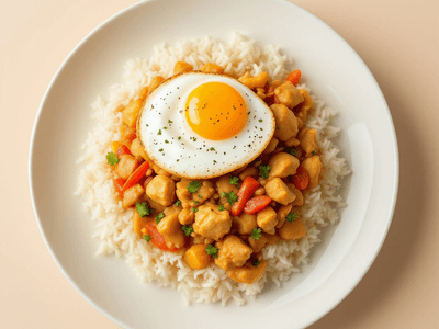 Chicken Stir Fry with Rice and Egg is a beloved lunch staple found in Singapore’s bustling kopitiams and hawker centres. This dish embodies the vibrant fusion influences that shape local cuisine, seamlessly blending tender chicken, fluffy rice, and a golden fried egg into a satisfying meal. Its roots lie in Singapore’s multicultural food landscape, where Chinese, Malay, and Indian flavors converge, creating dishes that are both nourishing and comforting. The stir fry method is popular in Singapore for its quick cooking style, which preserves the natural flavors and nutrients of each ingredient. The dish is typically enjoyed by office workers and families alike, thanks to its balanced profile and affordability. Chicken Stir Fry with Rice and Egg offers a medley of textures—juicy chicken, crisp vegetables, and silky egg—making it a complete meal that speaks to Singapore’s love for hearty, wholesome lunches. Whether eaten at a busy kopitiam or prepared at home, this dish is a testament to Singapore’s hawker culture and its embrace of global culinary influences.
