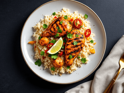 Grilled Chicken with Rice is a beloved staple in Singapore’s diverse food scene, often found at bustling kopitiams and hawker centres across the island. This dish is a delicious reflection of Singapore’s multicultural culinary landscape, blending tender, juicy grilled chicken with fragrant rice, fresh veggies, and local herbs. While it draws inspiration from classic hawker favourites, this health-conscious adaptation uses lean cuts and minimal oil, making it ideal for calorie counters and health enthusiasts. In Singapore, Grilled Chicken with Rice is enjoyed by people of all ages for lunch or a light dinner. Its smoky aroma, thanks to grilling over open flames, and the harmonious balance of savoury, tangy, and herbal notes make it a true crowd-pleaser. Whether you’re grabbing a quick meal at your neighbourhood kopitiam or preparing a healthy lunchbox at home, this dish offers a nutritious and satisfying option that honours Singapore’s passion for flavourful, fuss-free food. The inclusion of colourful vegetables and a light soy-lime dressing also highlights the fusion influences often seen in modern Singaporean cuisine.