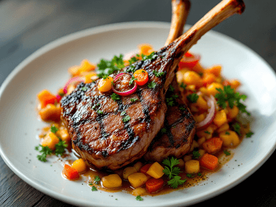 Grilled lamb chop is a protein-rich dish, supplying essential amino acids for muscle repair and growth. Lamb is a good source of B vitamins (especially B12), zinc, and iron, which support immune function and energy levels. By grilling and using a lean cut, the fat content is reduced, making it a heart-healthier option. The use of fresh herbs and spices adds antioxidants without excess sodium or calories.