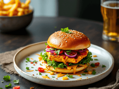 The Spicy Paneer Burger is a vibrant fusion dish, inspired by Singapore’s multicultural hawker scene and Indian influences. In bustling kopitiams across Singapore, fusion burgers have become a lunch-time favorite, blending local flavors with global concepts. This burger brings together the creamy goodness of paneer, fiery sambal, and crisp vegetables, all tucked inside a wholemeal bun. Perfect for vegetarians seeking a protein-rich meal, the Spicy Paneer Burger satisfies cravings for both spice and comfort food. In Singapore’s food culture, innovation thrives alongside tradition, and this burger reflects that spirit. Whether you grab it at a hawker stall in Little India or craft it at home, the Spicy Paneer Burger is a nutritious, satisfying option. The heat from local chilies, tang from yogurt, and crunch from cucumbers make each bite memorable. It’s a great choice for those looking for a meatless meal that doesn’t compromise on flavor or authenticity, and ideal for lunch in Singapore’s tropical climate.