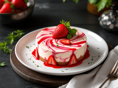 Unlike traditional cheesecakes that use heavy cream and sugar, this recipe substitutes lower-fat dairy and natural sweeteners to reduce calories and saturated fat. Incorporating Greek yogurt increases protein content, making the dessert more satiating. The fresh strawberry swirl offers natural fiber and antioxidants, making this a healthy dessert option suitable for calorie counters or anyone seeking a lighter treat.