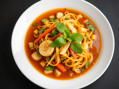 Yong Tao Fu Soup is a beloved staple of Singapore's vibrant hawker and kopitiam culture, known for its nourishing broth and customizable ingredients. Originating from the Hakka community, this dish has evolved to embrace the multicultural tapestry of Singapore, seamlessly blending tofu, vegetables, and light soup with local flavors. At any bustling hawker centre, you'll find locals selecting their favorite stuffed tofu, mushrooms, and greens, then watching as the stallholder simmers everything to perfection. What sets Singaporean Yong Tao Fu Soup apart is its fusion influence—fresh vegetables like kang kong, bittergourd, and soft tofu pockets are paired with a clear, umami-rich broth, making it both hearty and light. It's a comforting, healthy lunch choice that reflects the city’s focus on balance, freshness, and communal dining. With its gentle flavors and nourishing profile, Yong Tao Fu Soup is not just a meal but an experience woven into daily Singaporean life, perfect for anyone seeking a light yet satisfying dish.