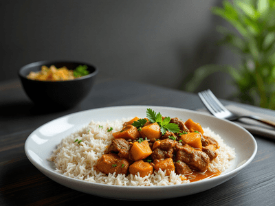 Beef Stew with Rice is a celebrated fusion dish rooted in Singapore’s vibrant hawker culture, often enjoyed at bustling kopitiams across the island. This hearty meal draws on global influences, adapting the classic stew with local spices and ingredients to suit the Singaporean palate. It is a wonderful example of how Singapore cuisine marries robust flavors from different cultures, creating a comforting dish that's both familiar and unique. The stew is simmered to perfection with tender beef cubes, carrots, potatoes, and a medley of aromatic spices, served over fluffy white rice. The result is a nourishing, well-balanced meal that is perfect for lunch. Its savory depth, gentle heat, and subtle sweetness reflect Singapore’s multicultural food scene, making it a beloved staple from hawker stalls to home kitchens. Enjoying Beef Stew with Rice is a way to experience the warmth and diversity of Singapore’s food heritage, one spoonful at a time.