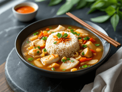 Clear Fish Broth with Jasmine Rice is a beloved dish in Singapore’s vibrant hawker culture, commonly found at kopitiams (local coffee shops) and food centres. This dish embodies the essence of Singaporean cuisine: simple, fresh, and layered with subtle flavors. The clear fish broth, infused with aromatic vegetables and herbs, is served alongside fluffy jasmine rice, creating a nourishing meal perfect for lunch. Rooted in Singapore’s multicultural food scene, Clear Fish Broth with Jasmine Rice is a fusion of Chinese and Malay influences, offering a lighter alternative to richer soup dishes. Its gentle, umami-laced broth is designed to highlight local produce and fresh fish, reflecting the Singaporean commitment to quality and health. The dish is ideal for those seeking a wholesome, balanced lunch that’s gentle on the palate yet rich in tradition. It’s a popular choice for health-conscious diners, and the clear broth ensures a low-fat, high-nutrient option that supports the Singaporean lifestyle.