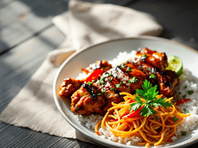 Vegetarian Korean BBQ Chicken is a beloved fusion dish in Singapore, blending the smoky, robust flavors of Korean BBQ with plant-based ingredients. In Singapore’s vibrant hawker culture, especially in cosmopolitan kopitiams, fusion dishes like this have quickly gained popularity among locals seeking bold tastes with healthier, meatless options. The dish features marinated soy-based 'chicken' or firm tofu, making it suitable for vegetarians while still delivering the iconic sweet, spicy, and umami notes of Korean BBQ. This healthy vegetarian adaptation is perfect for lunch-goers in Singapore’s busy CBD or students at bustling food courts. The traditional Korean BBQ marinade is reinterpreted with locally-sourced ingredients such as fresh ginger, garlic, and a touch of Gochujang, all balanced with low-sugar alternatives. Served with a side of crisp lettuce and quick-pickled cucumber, it’s a light yet satisfying meal that reflects Singapore’s love for multicultural culinary innovation. This recipe is ideal for anyone seeking a delicious, high-protein, meat-free lunch inspired by the ever-evolving Singaporean food scene.