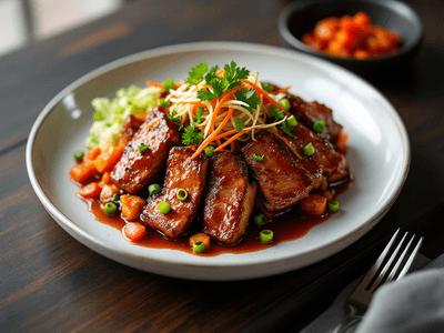 Vegetarian Korean BBQ Pork Belly is an innovative, health-conscious twist on a popular dish that has found its way into Singapore's bustling hawker culture and fusion dining scene. While the original Korean BBQ Pork Belly is famed for its savory, smoky flavors, this plant-based version is designed for vegetarians and those seeking a lighter meal. At many Singapore kopitiams and modern hawker stalls, fusion fare is celebrated, and this dish exemplifies how international dishes are adapted to suit local palates and dietary needs. The taste is rich and umami-packed, with a well-balanced marinade that captures the spirit of authentic Korean barbecue while using wholesome, readily available ingredients found in Singaporean markets. What makes this dish unique in the Singaporean context is its approachability and versatility. Whether you're a vegetarian, health enthusiast, or simply looking for a lighter lunch option, this recipe fits seamlessly into Singapore’s multicultural food tapestry. The sizzle of “pork belly” tofu slices on the grill brings a familiar sound to those who frequent local hawker centers, where open grilling and smoky aromas entice lunchtime crowds. Serve this with fresh lettuce, kimchi, and steamed rice for a satisfying meal that pays homage to both Korean tradition and Singapore’s vibrant food scene.